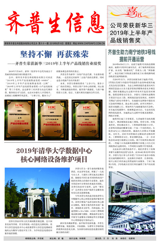 堅(jiān)持不懈 再獲殊榮 ------齊普生榮獲新華三2019年上半年產(chǎn)品線銷售業(yè)績獎(jiǎng)
