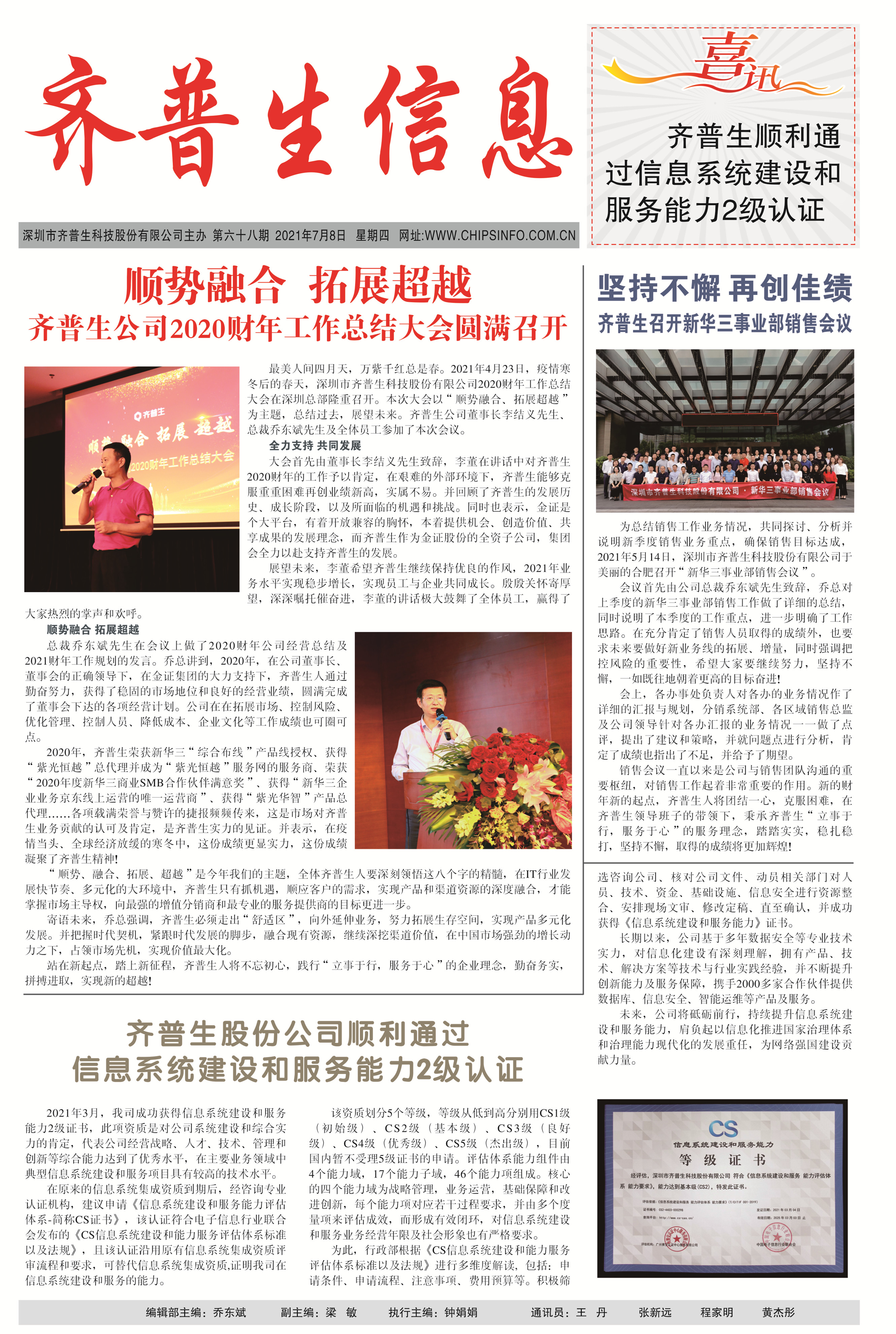 齊普生股份公司順利通過信息系統(tǒng)建設(shè)和服務(wù)能力2級認(rèn)證