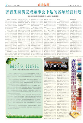 齊普生圓滿完成董事會下達的各項經(jīng)營計劃