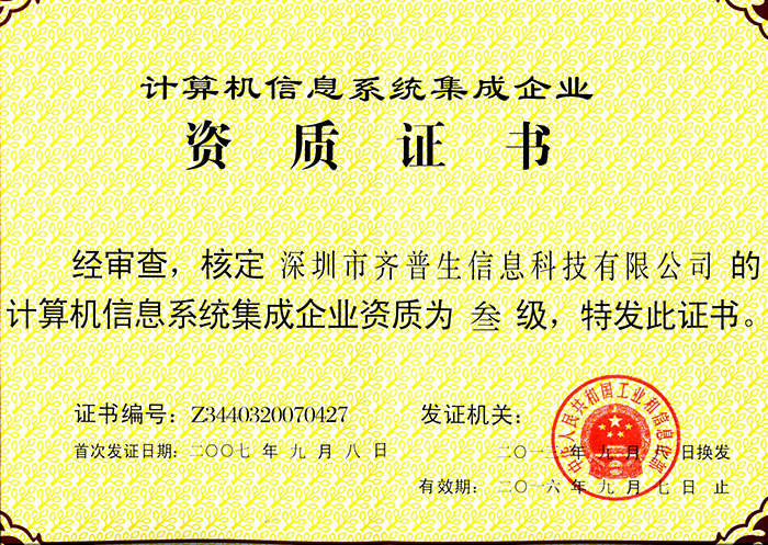 計算機信息系統(tǒng)集成企業(yè)資質證書(三級)